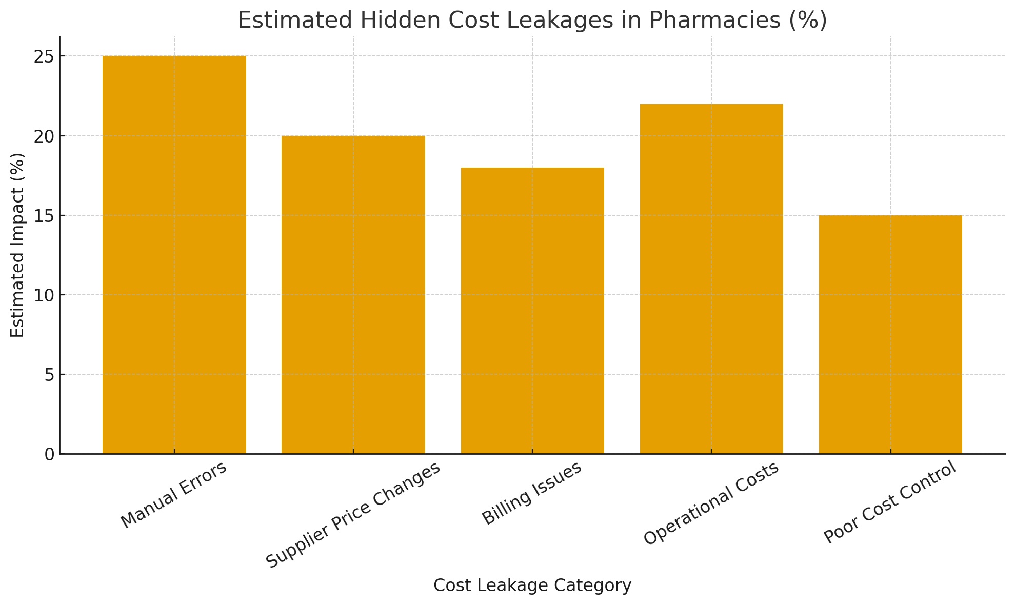(Chart: Estimated Hidden Cost Leakages in Pharmacies (%)